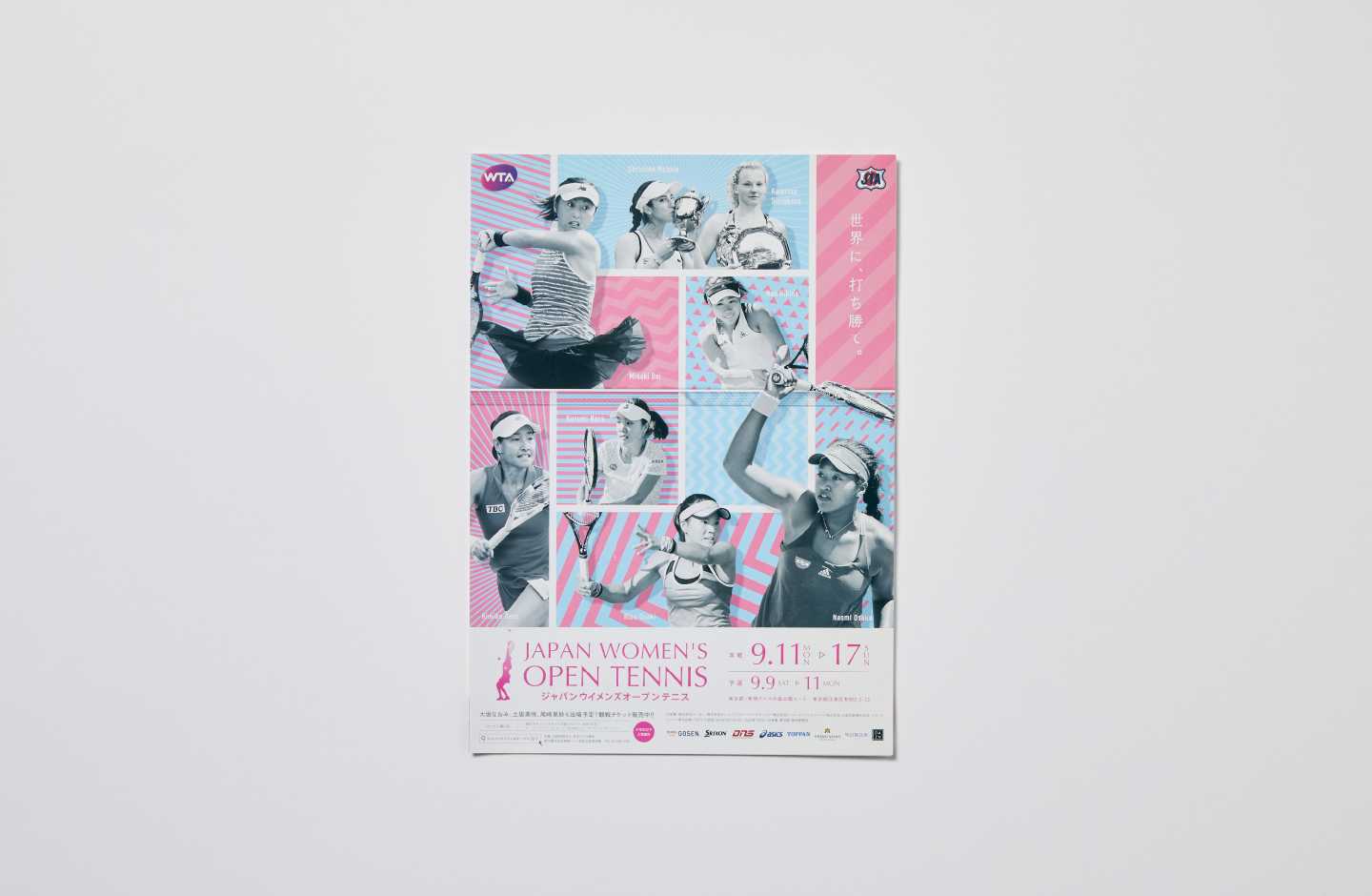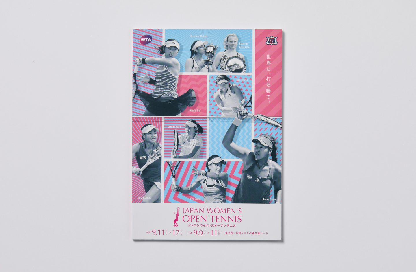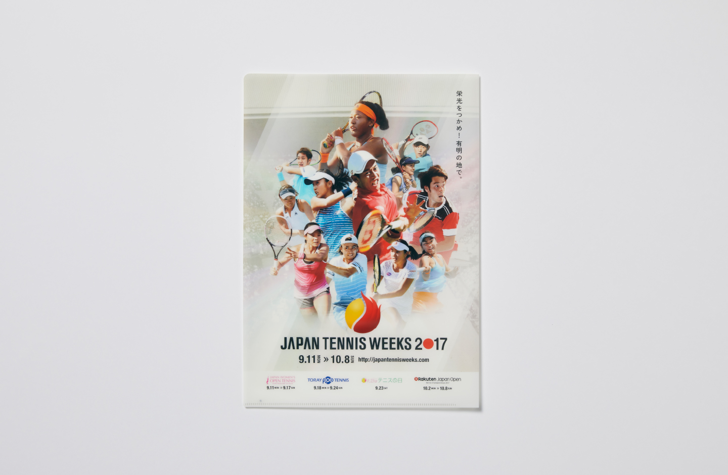 ポスターや冊子の表紙やグッズなどに反映しました。栄光のつかめをテーマに臨場感が出るように意識しました。また、女子大会の方は、テニスコートのデザインを踏襲しています。
