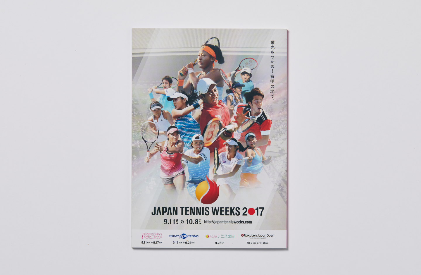ポスターや冊子の表紙やグッズなどに反映しました。栄光のつかめをテーマに臨場感が出るように意識しました。また、女子大会の方は、テニスコートのデザインを踏襲しています。